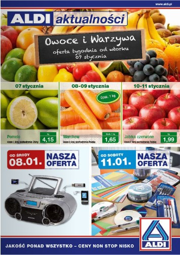 {loadposition linkAldi} Nowa gazetka promocyjna Aldi. Polecane promocje z gazetki Aldi: Drukarka taśm i etykiet - 69,99 zł. Segregator 8 cm - 5,99 zł. Filety z piersi kurczaka 1 kg - 15,50 zł. Oferta ważna od 7.01 do…