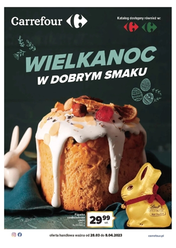 'Misja: Wyjątkowo pyszna Wielkanoc' - nowa gazetka promocyjna sieci marketów Carrefour. Polecane promocje z gazetki Carrefour: Sernik z belgijską czekoladą Carrefour 100 g - 4,69 zł. Kawa ziarnista Davidoff 500 g - 3,99 zł. Sękacz Polska Gościna 250 g…