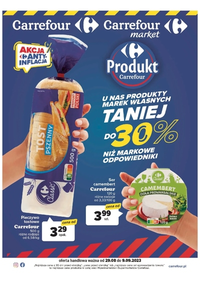 {loadposition linkCarrefour2} 'Produkt Carrefour. Produkty marek własnych taniej do 30% niż markowe odpowiedniki' - nowa gazetka promocyjna sieci marketów Carrefour. Polecane promocje z gazetki Carrefour: Pieczywo tostowe Carrefour 500 g - od 3,29 zł. Ser Camembert Carrefour 120 g…
