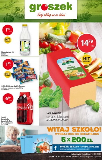 {loadposition linkGroszek} Nowa gazetka promocyjna sieci sklepów Groszek. Polecane promocje z gazetki Groszek: Ser Gouda Mleczna Zagroda 1 kg - 14,79 zł. Mleko Łaciate 1 L - 1,99 zł. Cukierki Mieszanka Wedlowska 100 g - 1,99…