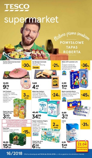 'Historie pisane smakiem' - nowa gazetka promocyjna sieci sklepów Tesco. Polecane promocje z gazetki Tesco: Ser Masdam Serenada 250 g - 4,49 zł. Mleko Nan Optipro 800 g - 34,99 zł. Masło Łowickie Ekstra 200 g…