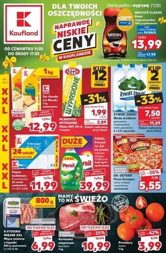 'Dla Twoich oszczędności naprawdę niskie ceny' - nowa gazetka promocyjna sieci marketów Kaufland. Polecane promocje z gazetki Kaufland: Ser Gouda lub Morski 1 kg - 12,99 zł. Mleko Wypasione Mlekovita 12x1 L - 23,88 zł. Pizza Guseppe różne rodzaje…