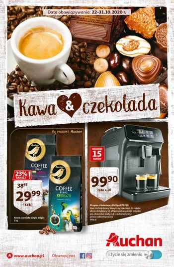 {loadposition linkAuchan2} 'Kawa & Czekolada' - nowa gazetka promocyjna sieci marketów Auchan. Polecane promocje z gazetki Auchan: Kawa ziarnista Auchan Single Origin 1 kg - 29,99 zł. Ekspres ciśnieniowy Philips EP1220 - 999 zł. Ser Morski 1 kg -10,99…