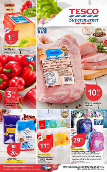Nowa gazetka promocyjna Tesco. Polecane promocje z gazetki Tesco: Schab wieprzowy bez kości 1 kg - 10,85 zł. Ser Morski 100 g - 1,19 zł. Papryka czerwona 1 kg - 3,99 zł. Oferta ważna od 6.08 do…