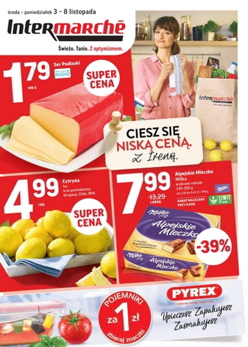 {loadposition linkIntermarche2} 'Ciesz się niską ceną z Ireną' - nowa gazetka promocyjna sieci sklepów Intermarche Polecane promocje z gazetki Intermarche: Ser Podlaski 100 g - 1,79 zł. Cytryny 1 kg - 4,99 zł. Alpejskie Mleczko Milka 330 g -…
