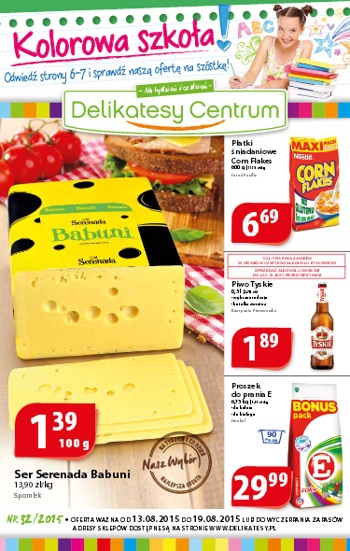 {loadposition linkDelikatesyCentrum} Nowa gazetka promocyjna Delikatesów Centrum. Polecane promocje z gazetki Delikatesów Centrum: Ser Serenada Babuni 100 g - 1,39 zł. Płatki śniadaniowe Nestle Corn Flakes 600 g - 6,69 zł. Proszek do prania E 6,75 kg - 29,99…