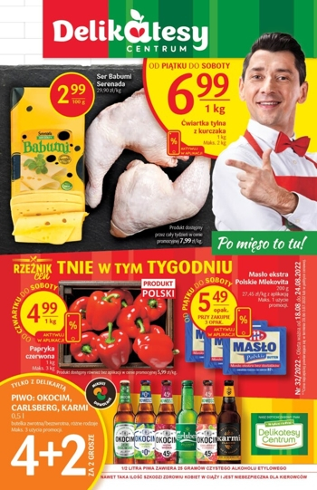 {loadposition linkDelikatesyCentrum2} 'Rzeźnik cen' - nowa gazetka promocyjna Delikatesów Centrum. Polecane promocje z gazetki Delikatesów Centrum: Ser Serenada Babuni 100 g - 2,99 zł. Papryka czerwona 1 kg - 4,99 zł*. Masło Ekstra Polskie Mlekovita 3x200 g - 16,47…