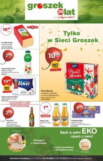 {loadposition linkGroszek} 'Jesień pełna aromatu!' - nowa gazetka promocyjna sieci sklepów Groszek. Polecane promocje z gazetki Groszek: Herbata ekspresowa Lipton Yellow Label 25 torebek - 3,99 zł. Ser żółty Gouda Mleczna Zagroda 1 kg - 16,49 zł. Jogurt Danone…