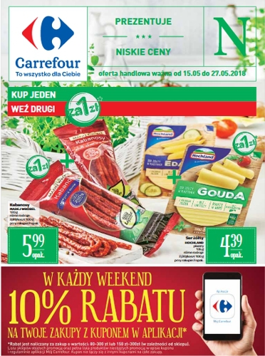{loadposition linkCarrefour} 'Niskie ceny' - nowa gazetka promocyjna sieci sklepów Carrefour. Polecane promocje z gazetki Carrefour: Kabanosy Madej Wróbel 2x120 g - 6,99 zł. Ser żółty Hochland 2x135 g - 5,39 zł. Bukiet kwiatów premium - 27,99 zł. …