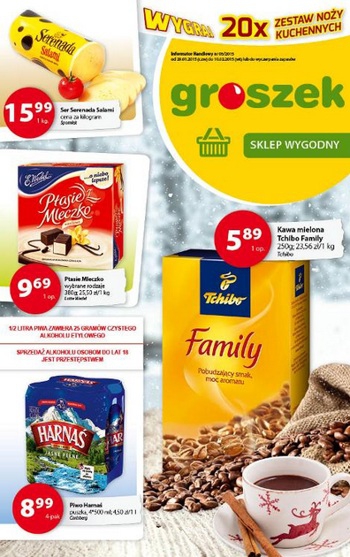 {loadposition linkGroszek} Nowa gazetka promocyjna sieci handlowej Groszek. Polecane promocje z gazetki Groszek: Kawa mielona Tchibo Family 250 g - 5,89 zł. Piwo Harnaś 4x500 ml - 8,99 zł. Ser Serenada Salami 1 kg - 15,99 zł. Oferta…