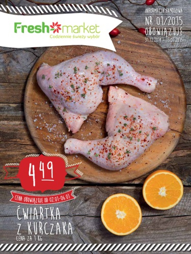{loadposition linkFreshmarket} Nowa gazetka promocyjna Freshmarket. Polecane promocje z gazetki Freshmarket: Ćwiartka z kurczaka 1 kg - 4,49 zł. Ser mozzarella do pizzy Mlekovita 1 kg - 16,99 zł. Torcik czekoladowy Bizon 300 g - 9,99 zł. Oferta…