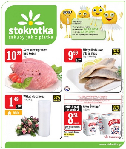 Nowa gazetka promocyjna sieci handlowej Stokrotka. Polecane promocje z gazetki Stokrotka: Szynka wieprzowa bez kości 1 kg - 10,99 zł. Wkład do znicza 160 g - 1,49zł. Ser Gouda 1 kg - 14,99 zł. Oferta ważna od…