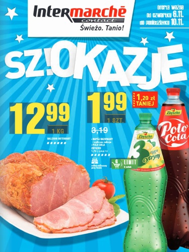 {loadposition linkIntermarche} Nowa gazetka promocyjna sieci handlowej Intermarche - "SZ!OKAZJE". Polecane promocje z gazetki Intermarche: Baleron gotowany 1 kg - 12,99 zł. Napój gazowany Zbyszko Polo Cola 1,75 L - 1,99 zł. Ser żółty Złoty Szlachecki Paturages 1 kg…