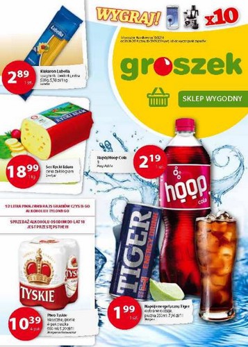 {loadposition linkGroszek} Nowa gazetka promocyjna sieci handlowej Groszek. Polecane promocje z gazetki Groszek: Makaron Lubella 500 g - 2,89 zł. Ser Rycki Edam 1 kg - 18,99 zł. Napój Hoop Cola 1 L - 2,19 zł. Oferta ważna…
