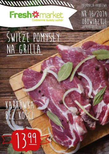 {loadposition linkFreshmarket} Nowa gazetka promocyjna Freshmarket - "Świeże pomysły na grilla". Polecane promocje z gazetki Freshmarket: Karkówka bez kości 1 kg - 13,99 zł. Ser Rycki Edam 1 kg - 20,99 zł. Kaszanka Tarczyński 1 kg - 10,99 zł.…