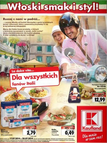 {loadposition linkKaufland} Nowa gazetka promocyjna marketu Kaufland - "Włoski smak i styl". Polecane promocje z gazetki Kaufland: Ser twardy Parmigiano Reggiano 150 g - 12,99 zł. Makaron Agnesi 500 g - 2,79 zł. Bułka ciabatta 75 g -…