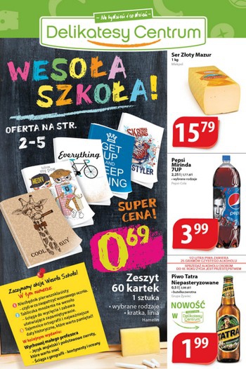 {loadposition linkDelikatesyCentrum} Nowa gazetka promocyjna Delikatesów Centrum - "Wesoła szkoła". Polecane promocje z gazetki Delikatesów Centrum: Zeszyt A5 60 kartek - 0,69 zł. Ser Złoty Mazur 1 kg - 15,79 zł. Piwo Tatra Niepasteryzowane 500 ml - 1,99 zł.…