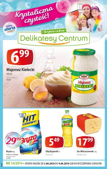 {loadposition linkDelikatesyCentrum} Nowa gazetka promocyjna Delikatesów Centrum - "Krystaliczna czystość". Polecane promocje z gazetki Delikatesów Centrum: Majonez Kielecki 700 ml - 6,99 zł. Proszek do prania Bryza 9 kg - 29,99 zł. Ser Włoszczowski 1 kg - 17,99 zł.…