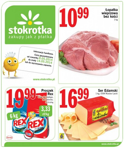 Nowa gazetka promocyjna sieci handlowej Stokrotka. Polecane promocje z gazetki Stokrotka: Proszek do prania Rex 6 kg - 19,99 zł. Łopatka wieprzowa bez kości 1 kg - 10,99 zł. Ser Edamski 1 kg - 16,99 zł. Oferta…