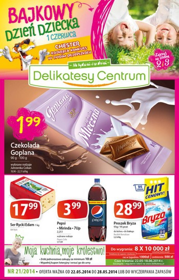 {loadposition linkDelikatesyCentrum} Nowa gazetka promocyjna Delikatesów Centrum. Polecane promocje z gazetki Delikatesów Centrum: Czekolada Goplana 100 g - 5,49 zł. Ser Rycki Edam 1 kg - 17,99 zł. Proszek do prania Bryza 9 kg - 28,99 zł. Oferta…