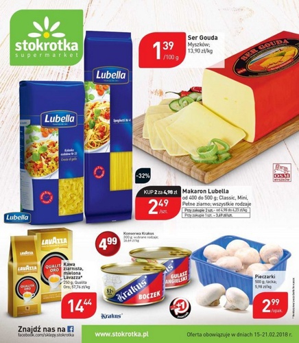 Nowa gazetka promocyjna sieci sklepów Stokrotka. Polecane promocje z gazetki Stokrotka: Makaron Lubella różne rodzaje 2 opakowania - 4,98 zł. Ser Gouda Myszków 100 g - 1,39 zł. Pieczarki 500 g - 2,99 zł. Oferta…