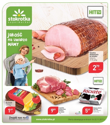 Nowa gazetka promocyjna sieci sklepów Stokrotka. Polecane promocje z gazetki Stokrotka: Szynka doskonała w smaku Gobarto 100 g - 2,79 zł. Ser Gouda Włoszczowa 100 g - 1,69 zł. Masło ekstra Łaciate 200 g - 5,69…