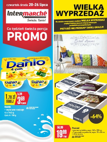 {loadposition linkIntermarche} Nowa gazetka promocyjna sieci handlowej Intermarche - "Co tydzień świeża porcja promo". Polecane promocje z gazetki Intermarche: Serek Danio 4x140 g - 3,69 zł. Komplet pościeli - 19,99 zł. Piwo Krusovice 500 ml -…