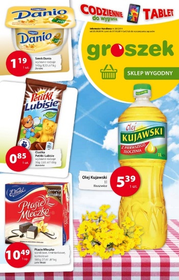 {loadposition linkGroszek} Nowa gazetka promocyjna sieci handlowej Groszek. Polecane promocje z gazetki Groszek: Serek Danio 140 g - 1,19 zł. Ptasie Mleczko Wedel 380 g - 10,49 zł. Olej Kujawski 1 L - 5,39 zł. Oferta ważna od…