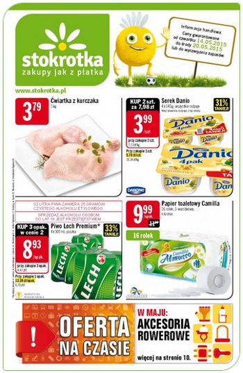 Nowa gazetka promocyjna sieci handlowej Stokrotka. Polecane promocje z gazetki Stokrotka: Ćwiartka z kurczaka 1 kg - 3,79 zł. Serek Danio 8x140 g - 7,99 zł. Papier toaletowy Camilla 16 rolek - 9,99 zł. Oferta ważna od…