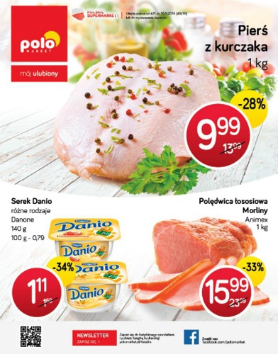 {loadposition linkPoloMarket} Nowa gazetka promocyjna Polo Market. Polecane promocje z gazetki Polo Market: Pierś z kurczaka 1 kg - 9,99 zł. Polędwica łososiowa Morliny Animex 1 kg - 15,99 zł. Serek Danio 140 g - 1,11 zł. Oferta…