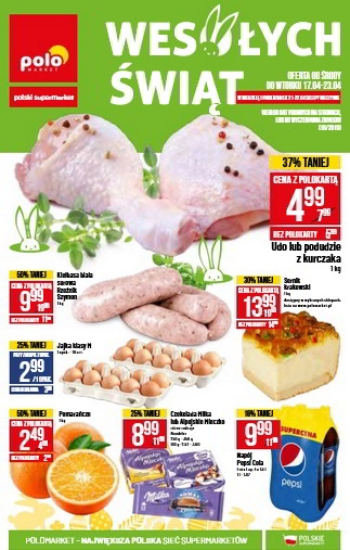 {loadposition linkPoloMarket} 'Przygotuj się na Wielkanoc' - nowa gazetka promocyjna sieci sklepów Polo Market. Polecane promocje z gazetki Polo Market: Sernik krakowski 1 kg - 12,99 zł. Kaczka świeża faszerowana jabłkami 1 kg - 8,99 zł. Kiełbasa…