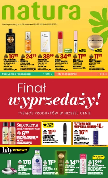 'Finał wyprzedaży! Tysiące produktów w niższej cenie ' - nowa gazetka promocyjna Drogerii Natura. Polecane promocje z gazetki Drogerii Natura: Szampon do włosów suchych lub matowych Syoss Oleo Intense 440 ml - 16,99 zł. Serum bio-aktywne do twarzy i…