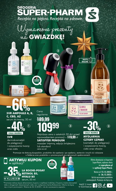 'Wymarzone prezenty na gwiazdkę' - nowa gazetka promocyjna Super-Pharm. Polecane promocje z gazetki Super-Pharm: Masażer intymny Satisfyer Penguin edycja świąteczna - 109,99 zł. Olejek do mycia Eucerin 400 ml - 39,99 zł. Serum przyspieszające wzrost rzęs Long 4 Lashes…