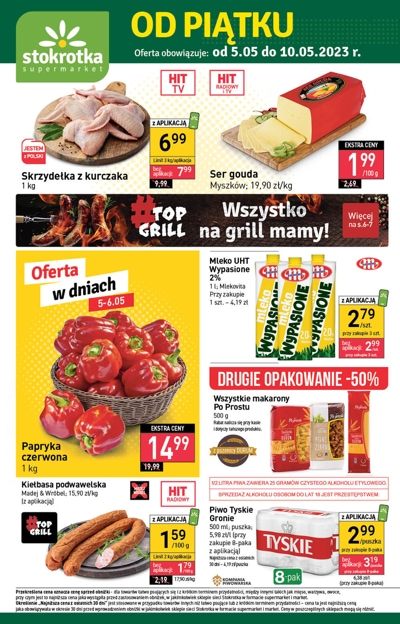 'Od piątku' - nowa gazetka promocyjna sieci sklepów Stokrotka. Polecane promocje z gazetki Stokrotka: Skrzydełka z kurczaka 1 kg - 6,99 zł*. Ser Gouda Myszków 100 g - 1,99 zł. Papryka czerwona 1 kg - 14,99 zł**. *…