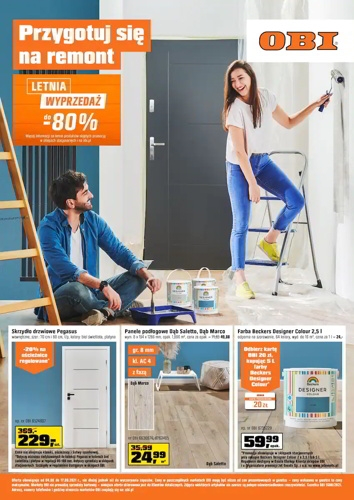 {loadposition linkObi} 'Przygotuj się na remont' - nowa gazetka promocyjna sieci marketów Obi. Polecane promocje z gazetki Obi: Skrzydło drzwiowe Pegasus - 229 zł. Panele podłogowe Dąb Saletto lub Dąb Marco m² - 24,99 zł. Farba Beckers Designer Colour…