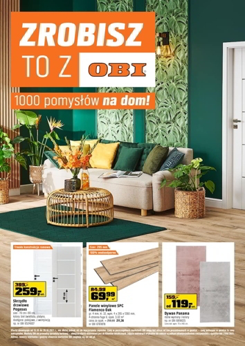 {loadposition linkObi} 'Zrobisz to z Obi. 1000 pomysłów na dom!' - nowa gazetka promocyjna sieci marketów Obi. Polecane promocje z gazetki Obi: Skrzydło drzwiowe Pegasus - 259 zł. Panele winylowe SPC Flamenco Oak m² - 69,99 zł. Dywan Panama…