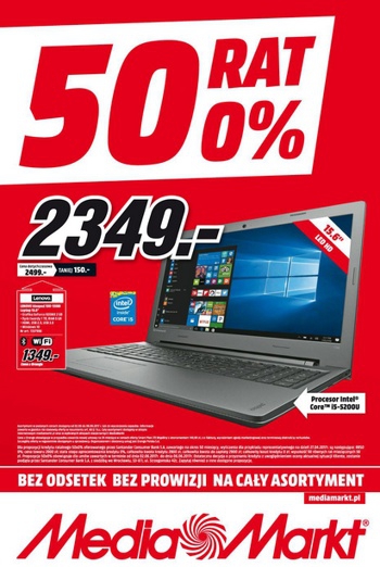 {loadposition linkMediaMarkt} Nowa gazetka promocyjna Media Markt - "50 rat 0%". Polecane promocje z gazetki Media Markt: Laptop LENOVO Ideapad 100-15IBD 80QQ01G9PB - 2499 zł. Smartfon SAMSUNG Galaxy J3 - 599 zł. Smartfon APPLE iPhone 7 32GB -…