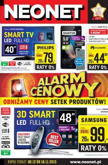 {loadposition linkNeonet} Polecane promocje z gazetki Neonet: Telewizor LED 40" Philips 40PFH5300 - 1580 zł. Smartfon Huawei P8 Lite - 898 zł. Telewizor LED 3D 48" Samsung UE48H6400 - 2574 zł. Oferta ważna od 12.11 do 18.11.
