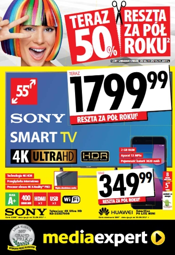 {loadposition linkMediaExpert} Nowa gazetka promocyjna sieci sklepów Media Expert - "Teraz 50%, reszta za pół roku". Polecane promocje z gazetki Media Expert: Telewizor 4K Ultra HD 55 cali Sony KD-55XE7096 - 3599,98 zł. Smartfon Huawei P9 Lite Mini -…