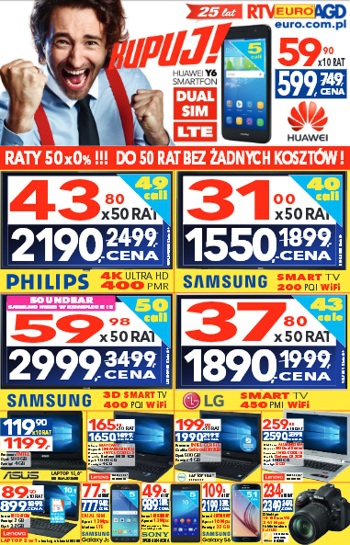 Nowa gazetka promocyjna RTV EURO AGD - "Kupuj!". Polecane promocje z gazetki RTV EURO AGD: Smartfon Huawei Y6 - 599 zł. Laptop Asus R515MA-BING-SX569B W8.1 - 1199 zł. Lustrzanka cyfrowa Nikon D5200 + 18-105 mm VR - 2349…