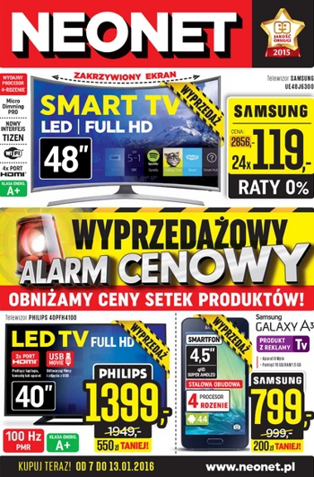 {loadposition linkNeonet} Nowa gazetka promocyjna Neonet - "Wyprzedażowy alarm cenowy - obniżamy ceny setek produktów!". Polecane promocje z gazetki Neonet: Telewizor Curverd TV 48" SAMSUNG UE48J6300 - 2856 zł. Telewizor LED 40" PHILIPS 40PFH4100/88 - 1399 zł. Smartfon SAMSUNG…