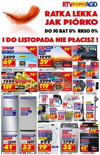 'Rata lekka jak piórko i do listopada nie płacisz' - nowa gazetka promocyjna RTV EURO AGD. Wszystkie usługi 25% taniej. Polecane promocje z gazetki RTV EURO AGD: Telewizor 4K Ultra HD 65 cali Philips 65PUS6554/12 - 3499 zł. …