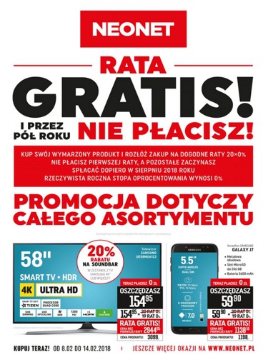 {loadposition linkNeonet} 'Rata gratis i przez pół roku nie płacisz!' - nowa gazetka promocyjna Neonet. Polecane promocje z gazetki Neonet: Smartfon Samsung Galaxy J7 - 1198 zł. Telewizor 4K Ultra HD 58 cali Samsung UE58MU6122 - 3099…