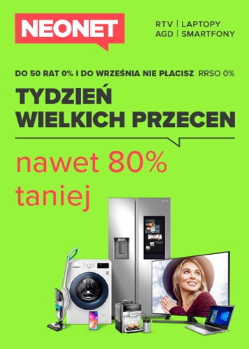 {loadposition linkNeonet} 'Tydzień wielkich przecen' - nowa gazetka promocyjna sieci sklepów Neonet. Nawet 80% taniej oraz do 50 rat 0% i do września nie płacisz. RRSO 0%. Polecane promocje z gazetki Neonet: Telewizor 4K Ultra HD 50 cali Samsung…
