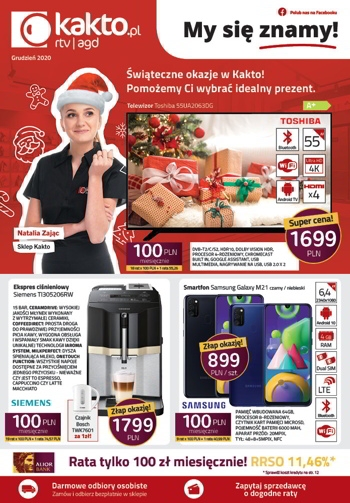 {loadposition linkKakto} 'Świąteczne okazje w Kakto! Pomożemy Ci wybrać idealny prezent' - nowa gazetka promocyjna sieci sklepów Kakto. Polecane promocje z gazetki Kakto: Telewizor 4K Ultra HD 55 cali Toshiba 55UA2063DG - 1699 zł. Ekspres ciśnieniowy Siemens TI305206RW -…