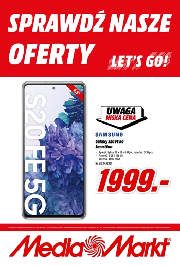 {loadposition linkMediaMarkt2} 'Sprawdź nasz oferty Let's go!' - nowa gazetka promocyjna Media Markt. Polecane promocje z gazetki Media Markt: Smartfon Samsung Galaxy S20 FE - 1999 zł. Ekspres do napojów SODASTREAM ART WHITE Butelka i nabój - 379 zł.…