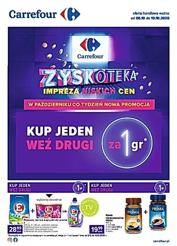 {loadposition linkCarrefour} 'Zyskoteka - Impreza niskich cen. W październiku co tydzień nowa promocja. Kup jeden i weź drugi za 1 grosz' - nowa gazetka promocyjna sieci marketów Carrefour. Polecane promocje z gazetki Carrefour: Proszek, żel lub kapsułki do prania…