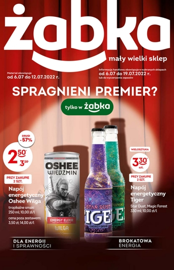 {loadposition linkZabka} 'Spragnieni premier?' - nowa gazetka promocyjna sieci sklepów Żabka. Polecane promocje z gazetki Żabka: Napój energetyczny Oshee Wilga 2x250 ml - 5 zł. Napój energetyczny Tiger 2x330 ml - 6,60 zł. Smoothie Foodini 250 ml - 3,99…