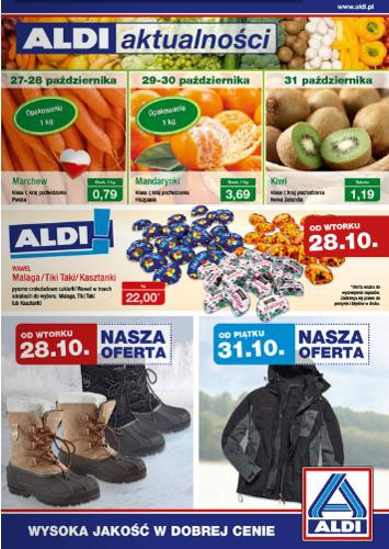 {loadposition linkAldi} Nowa gazetka promocyjna Aldi. Polecane promocje z gazetki Aldi: Dżinsy męskie Twill - 39,99 zł. Żakardowy obrus plamoodporny - 34,99 zł. Śniegowce damskie/męskie - 79,99 zł. Oferta ważna od 27.10 do wyczerpania zapasów.