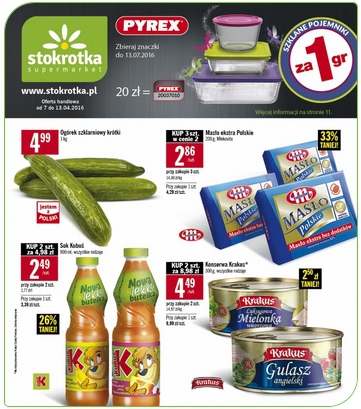 Nowa gazetka promocyjna sieci handlowej Stokrotka. Polecane promocje z gazetki Stokrotka: Ogórek szklarniowy krótki 1 kg - 4,99 zł. Sok Kubuś 2x900 ml - 4,98 zł. Konserwa Krakus 2x300 g - 8,98 zł. Oferta ważna od 7.04…